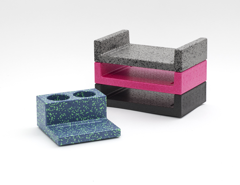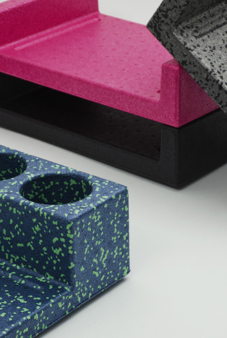 Unit One & Unit Two are combinable organisational modules for the desk. They offer essential functionality for the fundamental things of a modern working environment. The incisive shapes and the expressive colours communicate the special properties of the 100% recyclable plastic foam EPP. Formally, the Units play with a lightness contrasting the suprising volume. All in all, they represent a long-lasting, recognizable product design.