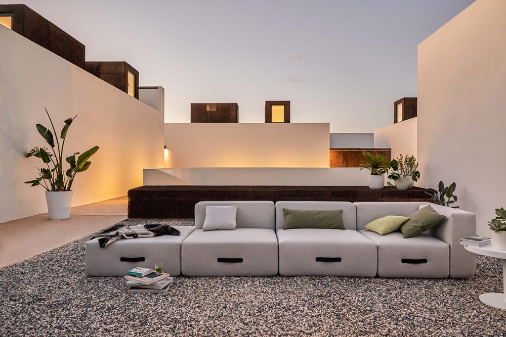 The three modules of MIAMI can be combined in a variety of ways and offer numerous options for indoor and outdoor use. The waterproof fabric, the handle at the front of each element and the slides at the bottom are the key design features, which make MIAMI adaptable to a wide field of applications.