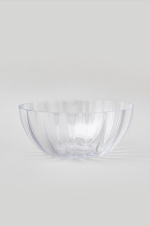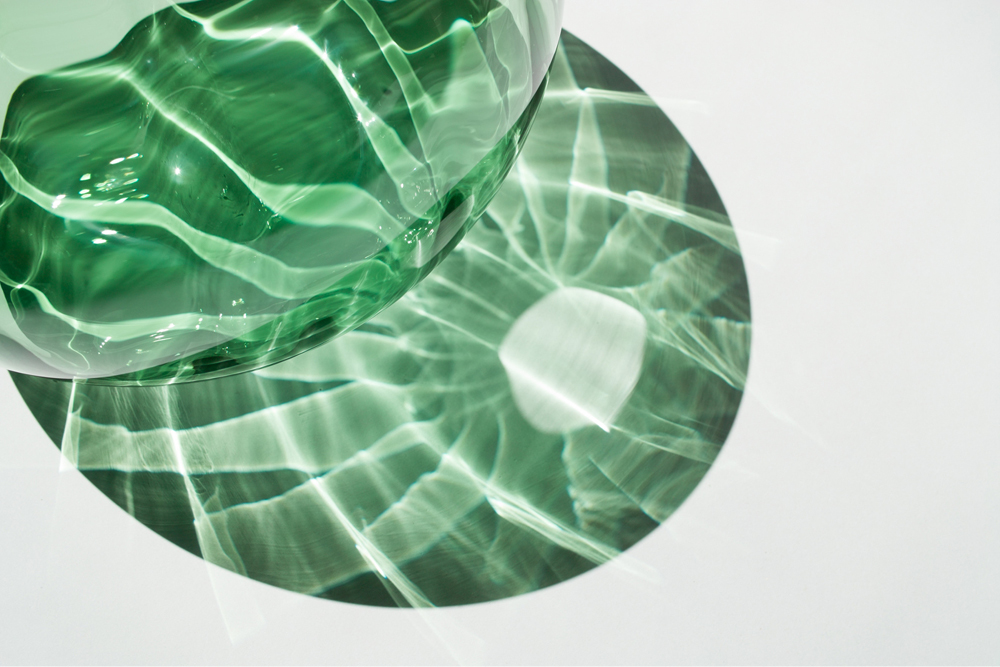 The vases and the bowl are part of the glass product family Louise next to the Louise pendant and wall light. They are the most pure interpretation celebrating a liquid glass moment. The glass body gives spectacular reflexions onto the table and the relief structure is like a frosted memory of the process of making.