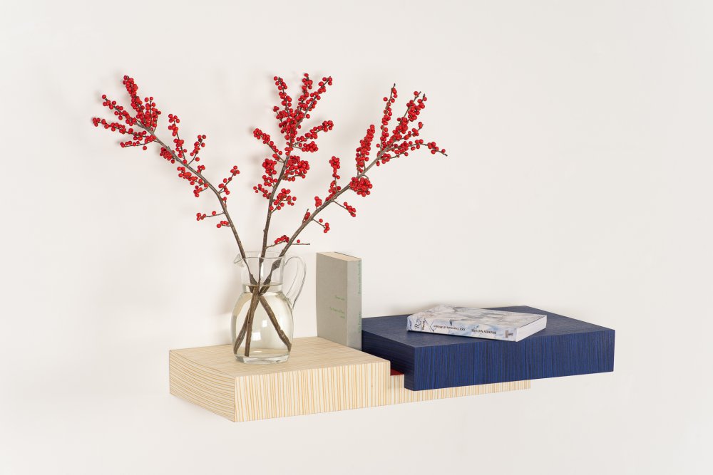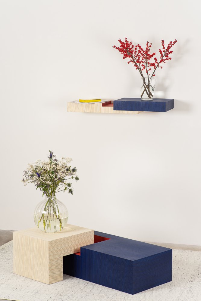 Inside Out consists of two pairs of nestable furniture: one is a wall console, the other a coffee table. The pieces were created in cooperation with the Italian veneer manufacturer