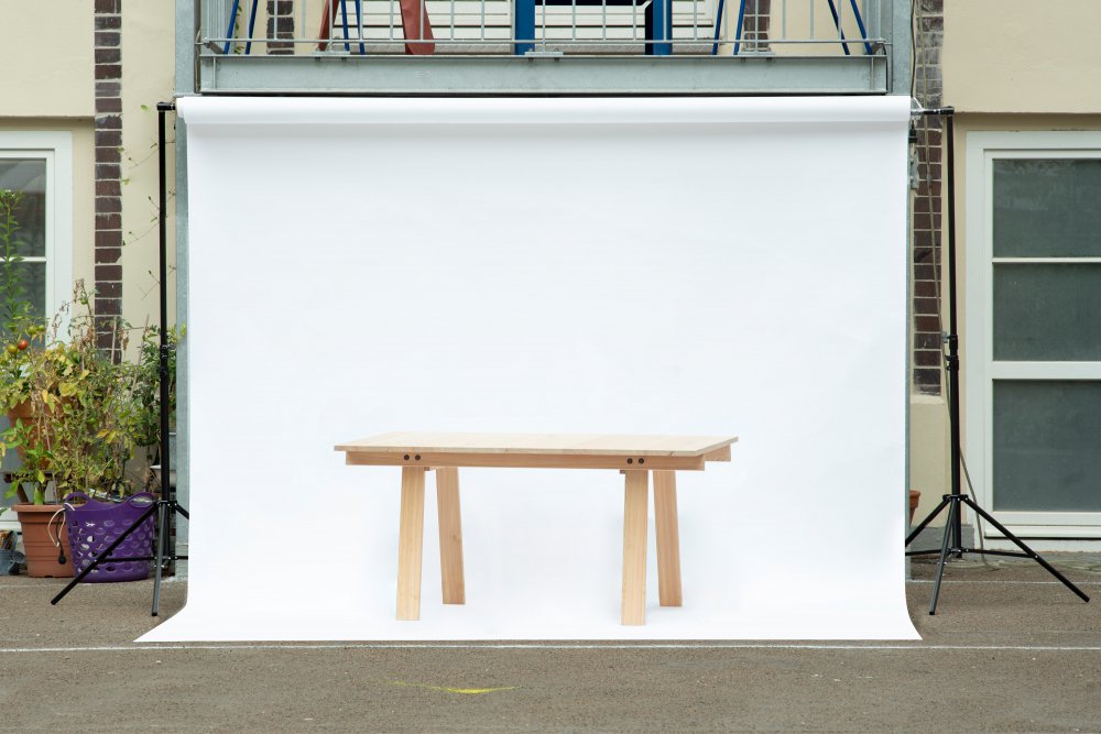 Besides, the unusual orientation of the seat and table surfaces is another feature that adds complexity to the furniture.