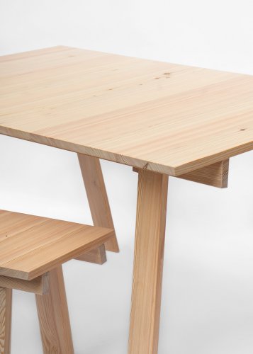 KARL is a family of furniture made of larch consisting of table, bench and chair designed for AURA Kawendel in Austria.