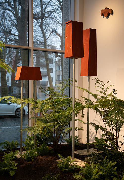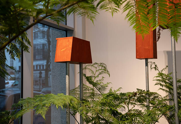 Mark Braun shows a series of three bird houses designed for sparrows with a special focus on cohabitation to support urban environment as a home for all.