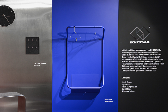 Echtstahl presented a row of new products at the imm cologne 2018, Including the HAMA series, Piro and Ivo, designed by Studio Mark Braun. Moreover we were commissioned to create the entire exhibition stand, which is constructed from powder coated sheet steel. The visual appearance is clear and colorful.