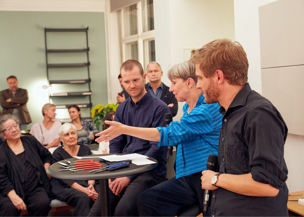 On spot Renate Flagmeier (Museum der Dinge) talked about the past and the future of Mono Ring with Mark Braun (design) and Johannes Seibel (manufactory).