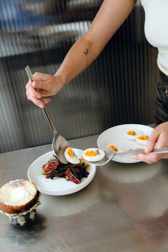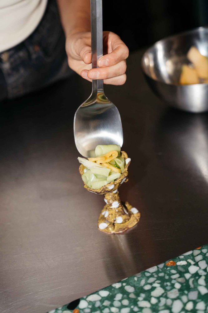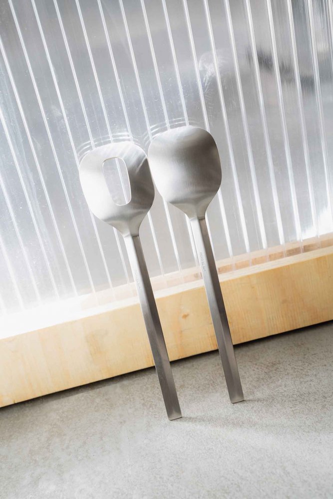 The Mono V salad servers consist of a serving spoon and a salad fork. The bowls of the pieces are deliberately large (70 mm wide). This format makes them very functional and universal.